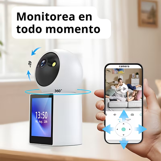 Cámara Inteligente 2K con Videollamada Bidireccional y Pantalla HD – Mantén a Tu Familia Segura 24/7